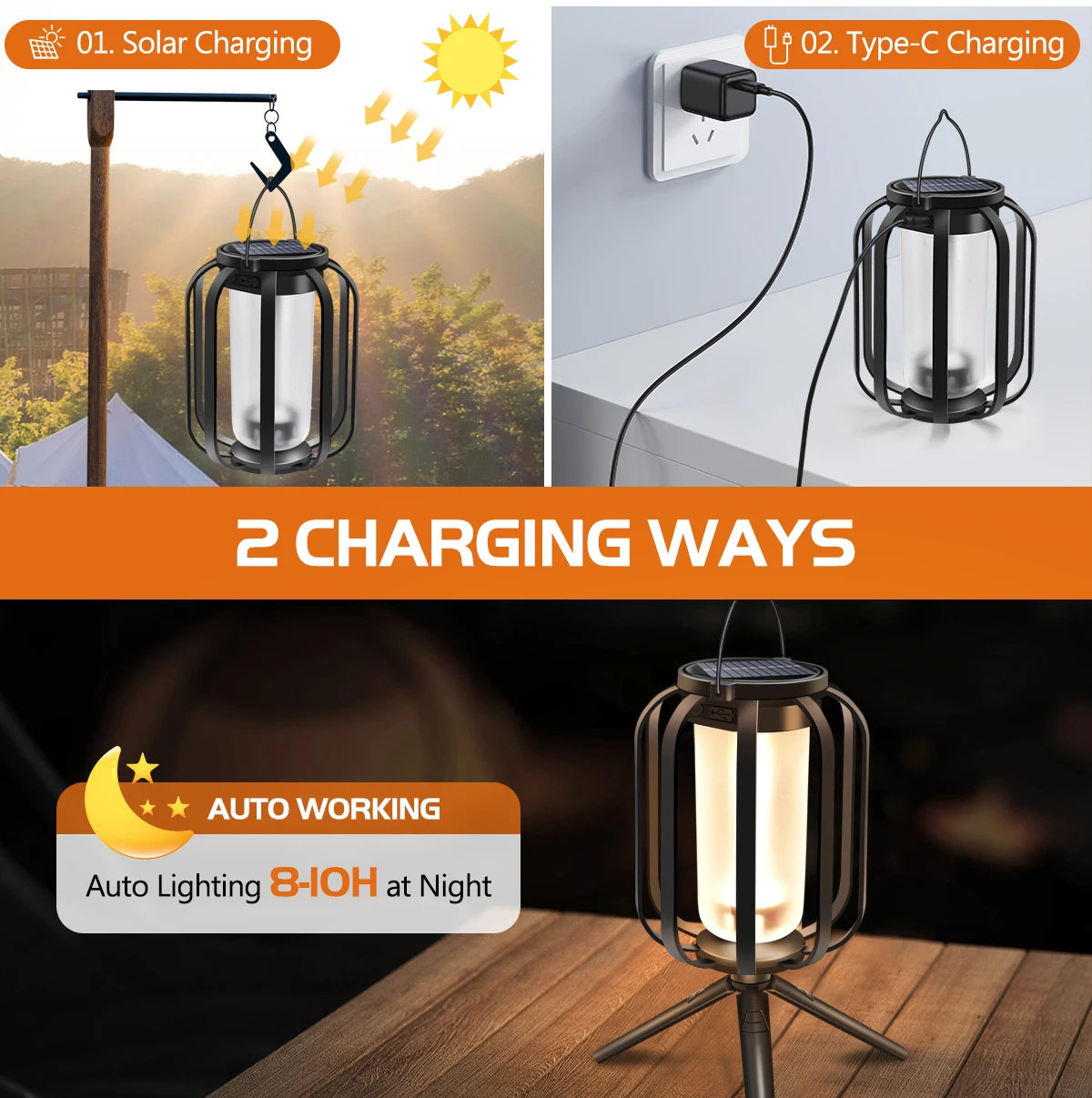 Leave it outside to soak up the sun all day, or plug in USB-C for a quick boost. No hunting for batteries, no “uh-oh” when the power runs low—just reliable light, every night.